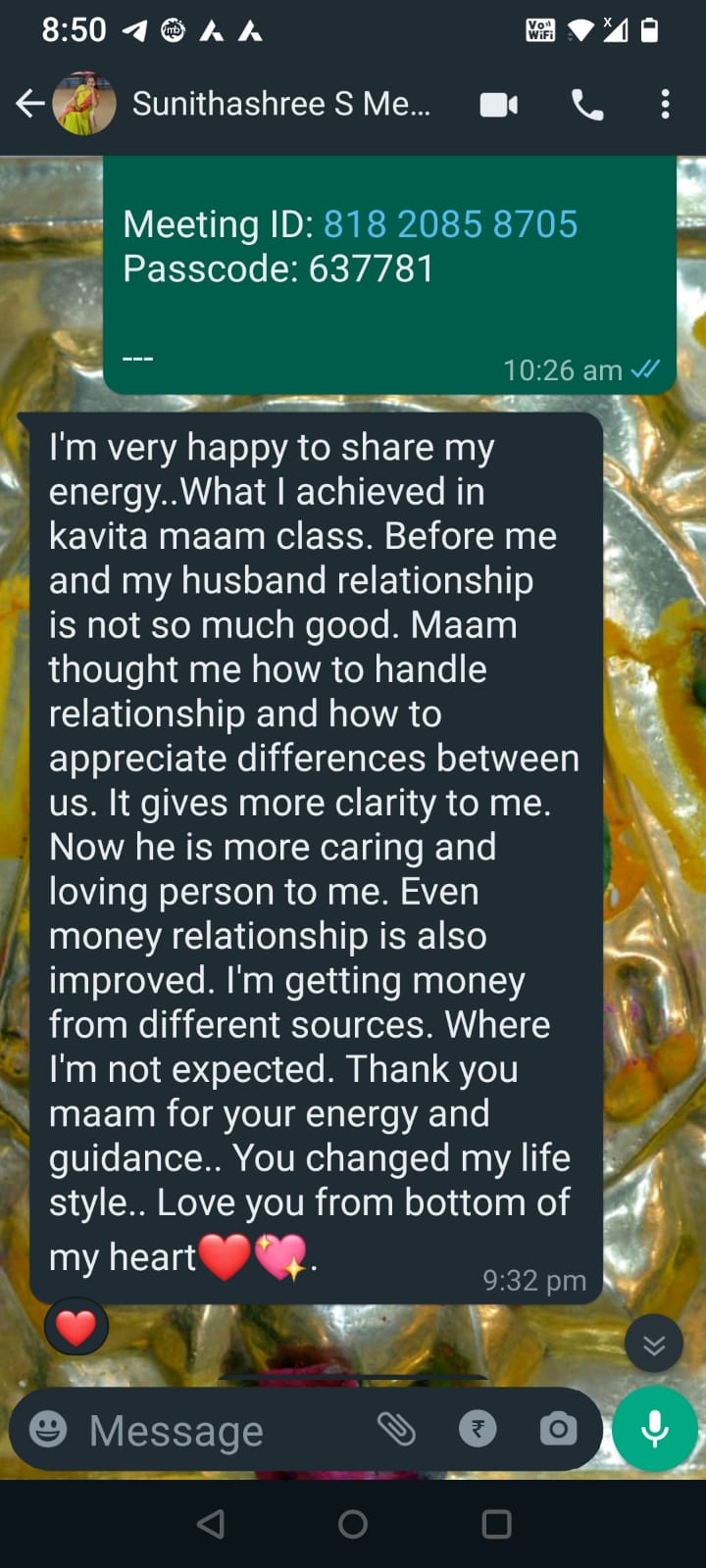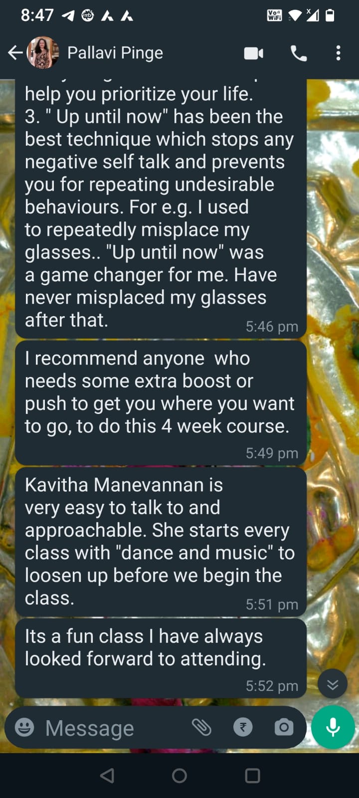 Her mission is bold and unwavering: to empower every individual to live a life of abundance—in health, wealth, relationships, and career—without sacrifice, without compromise. Through her years of research and practice, Kavitha has designed transformational strategies and tools that unlock true potential and create lasting change. For her, empowerment is not a privilege—it is every individual’s birthright.